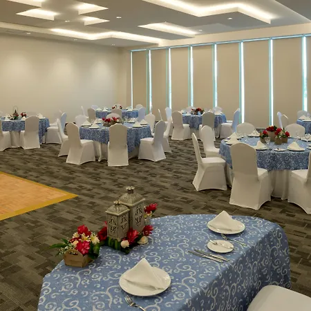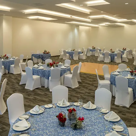 Real Inn Cancun为商务客人提供宴会和会议设施 和工作桌以及会议室。 - ❓